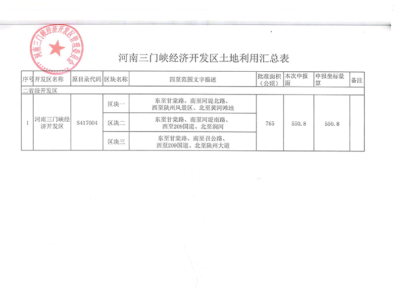 2018年,河南三門峽經(jīng)濟(jì)開發(fā)區(qū)土地變更。當(dāng)年2月26日經(jīng)中華人民共和國國家發(fā)展和改革委員會、中華人民共和國科學(xué)技術(shù)部、中華人民共和國國土資源部、中華人民共和國住房和城鄉(xiāng)建設(shè)部、中華人民共和國商務(wù)部、中華人民共和國海關(guān)總署2018年第4號公告了《中國開發(fā)區(qū)審核公告目錄》,其中河南三門峽經(jīng)濟(jì)開發(fā)區(qū)代碼S417004,核準(zhǔn)面積550.83公頃(見附件1),并確定了開發(fā)區(qū)的四至范圍為:東至甘棠路,西至陜州風(fēng)景區(qū),北至黃河灘地,南至召公路(見附件2)。根據(jù)最新四至范圍,陜州風(fēng)景區(qū)不在開發(fā)區(qū)管理范圍之內(nèi),且開發(fā)區(qū)沒有機(jī)構(gòu)設(shè)置審批權(quán)限,故您提案建議開發(fā)區(qū)成立古城管理委員會沒法辦理。