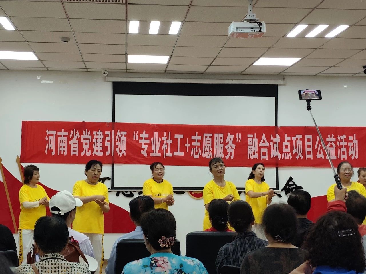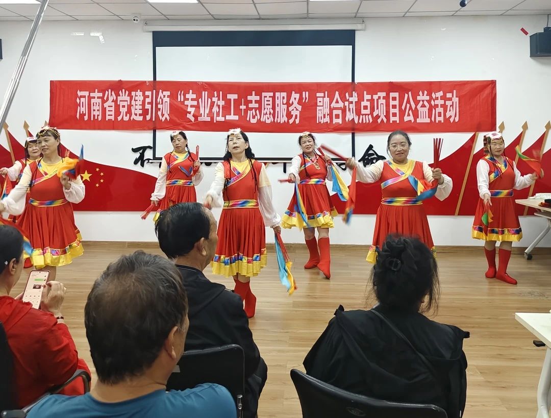 活動現(xiàn)場,文藝表演精彩紛呈。三門峽市心理咨詢師協(xié)會副會長張海曼深情朗誦詩歌《端午》,以鏗鏘之聲傳遞節(jié)日文化底蘊;志愿者馬萍演唱原創(chuàng)歌曲《端午想起父母的愛》,真摯情感引發(fā)全場共鳴。隨后,協(xié)會副會長張愛萍帶領(lǐng)老人們參與手勢操互動,現(xiàn)場笑聲不斷。值得一提的是,小梅花戲曲金獎得主、梨園春擂主馮婉琪獻唱了豫劇經(jīng)典《花木蘭》,高亢婉轉(zhuǎn)的唱腔贏得陣陣掌聲。文化志愿者協(xié)會的舞蹈《手心有你》和蒙古舞《情歌獻草原》則以靈動舞姿展現(xiàn)青春活力,為老人們獻上一場視聽盛宴。